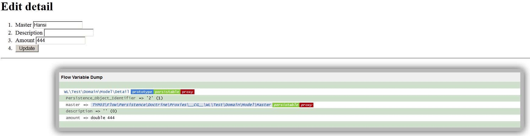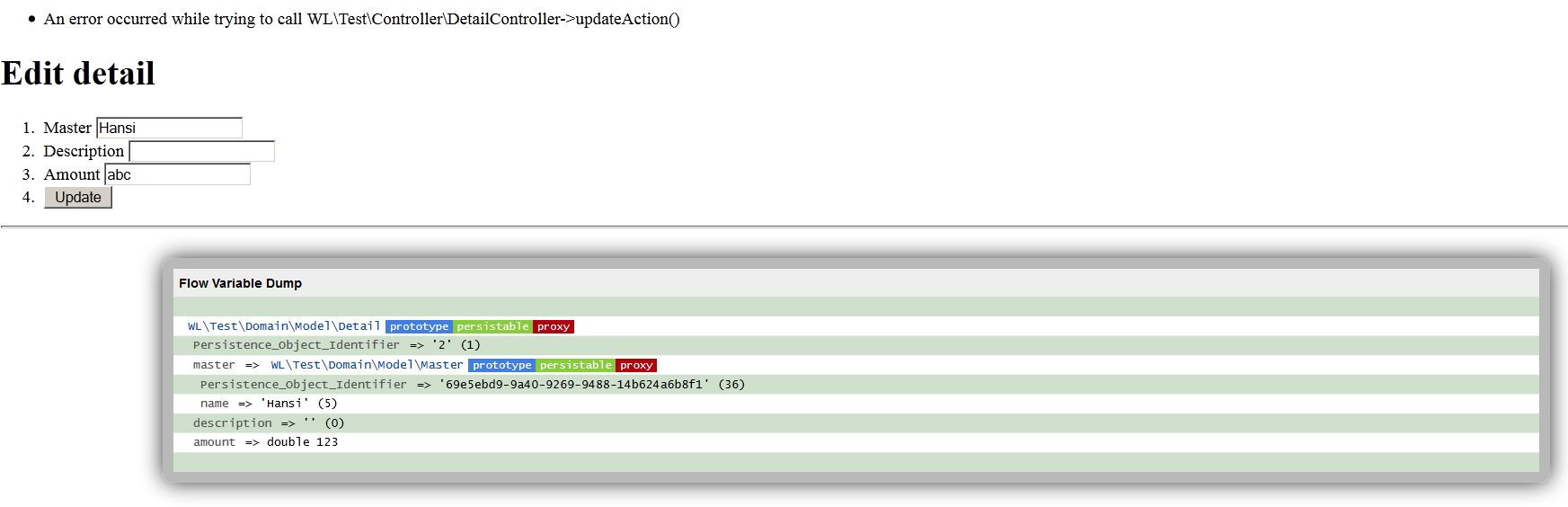 I debuged "detail" before and after a validation error in edit form.